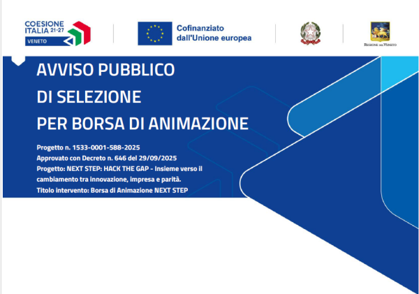 Il progetto “NEXT STEP: HACK THE GAP – Insieme verso il cambiamento tra innovazione, impresa e parità” nasce dalla consapevolezza che la parità di genere rappresenta una leva strategica per lo sviluppo sostenibile e inclusivo del territorio.